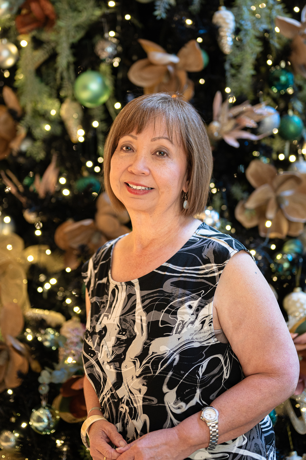 The lights of a Christmas tree, are always make a good background for a portrait.