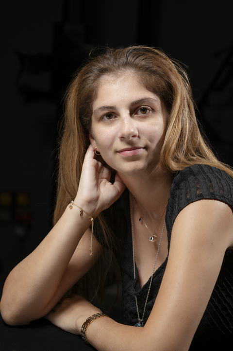 The lights of a Christmas tree, are always make a good background for a portrait.